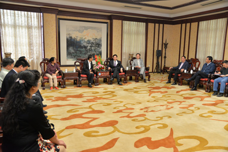 校长谢和平院士在望江校区明德楼贵宾厅会见了姜维平先生。常务副校长李虹教授、副校长步宏教授、校党委副书记李向成教授,以及校办、宣传部、教务处、外联办及楼凤