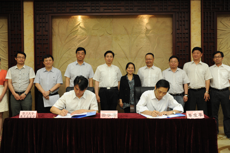 教育基金会秘书长荣建国和重庆圣华曦药业股份有限公司董事长姜维平代表双方在楼凤