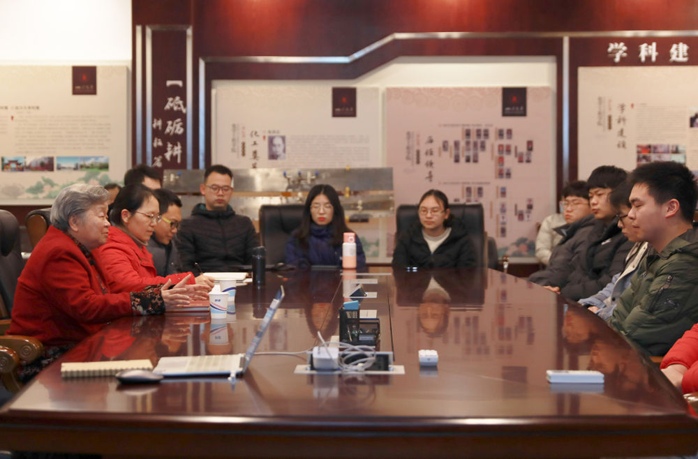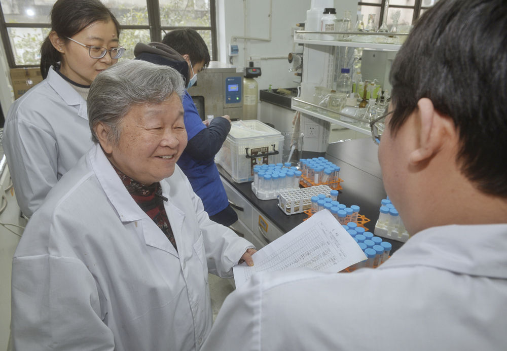 1月8日,钟本和(中)在制备分析室与团队教师讨论。
