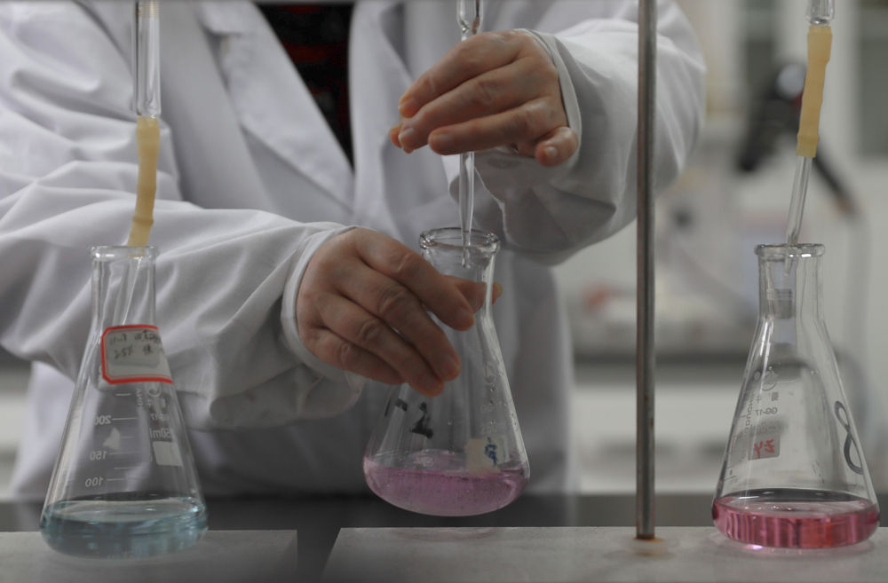 1月8日,钟本和展示用最新工艺制备的高纯度磷铵。