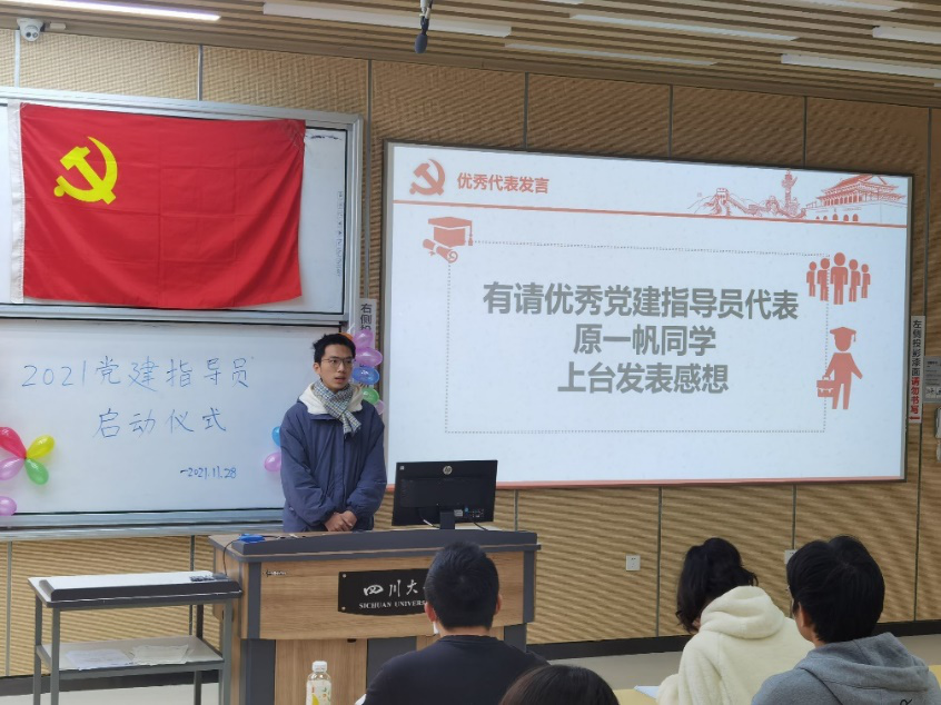 优秀党建指导员代表原一帆学长发言
