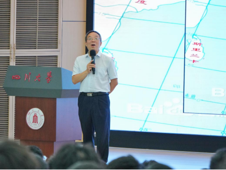 唐盛伟从成都的气候、饮食、自然与文化遗产等引入,向全体同学介绍了成都的独特风貌。他向同学们详细介绍了楼凤