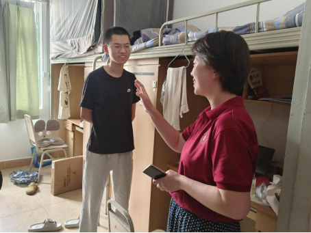 姜利寒认真了解了同学们的生活和学习情况,特别关注他们对校园环境、宿舍条件以及作息安排的适应度。她与同学们亲切交流,鼓励他们以积极的态度面对大学生活,珍惜时间、勤奋学习。她特别指出,大学生活与初高中阶段的学习生活有很大的差异,学生在时间安排上有更高的自由度,因此自律是大学生活中至关重要的一部分。这不仅要求同学们在学业上做到认真严谨,更体现在日常生活的时间管理和自我约束上,同学们要学会自主安排学习与休息的时间,保持良好的作息习惯,通过合理的时间规划和有效的学习方法进一步锻炼自我管理能力,为未来的四年的成长与发展奠定坚实基础。同时,姜利寒也强调了大学生活中团队精神和个人责任感的重要性,指出在集体生活中大家要相互理解、共同进步,严格遵守宿舍管理规定,培养良好的生活习惯。
