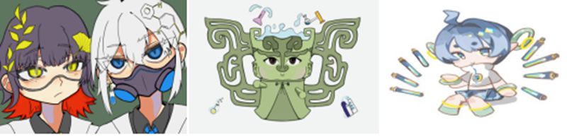 获奖作品(从左至右依次为107、109和105班的形象设计)