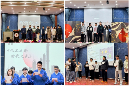 决赛现场,各班级的表演形式丰富多样,内容精彩纷呈,为大家呈现化工世界中动人心弦的故事篇章。比赛开始,112班和103班带来的朗诵《化学之舞》和《实验与理论交响》带动了现场气氛,点燃了大家的热情。紧接着102班表演的情景剧中展现化工先辈在历经迷茫与困顿后,依旧在化工之路上迈步向前。然后上演的是101班的《“氨”全化工》,为我们展示了“氨”在化工中丰富多彩的应用。