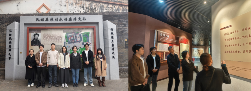实践团成员在刘永福故居合影(左)及在馆内参观讨论(右)