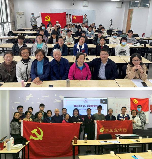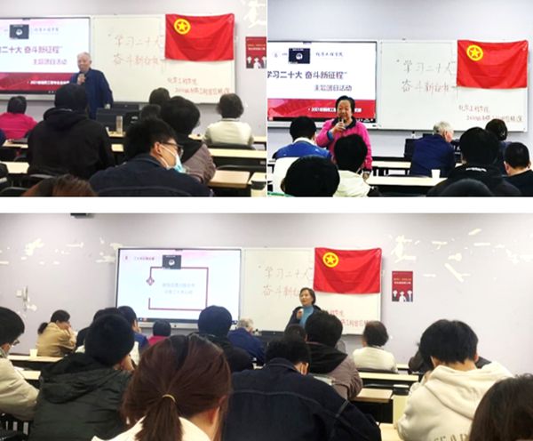 百川宣讲团高雨庆同学详细介绍了党的二十大的精神内涵;然后是“老师说”,由李德富老师由制药工程专业的发展历程与专业特色引入对“二十大”精神的感悟和阐释;最后是“党员说”,关工委的老党员李川娜老师、梁明征老师和傅运清老师以个人阅历层面分别给同学们分享他们学习“二十大”的心得感悟,从而增强同学们对于二十大精神内涵的理解与体会。