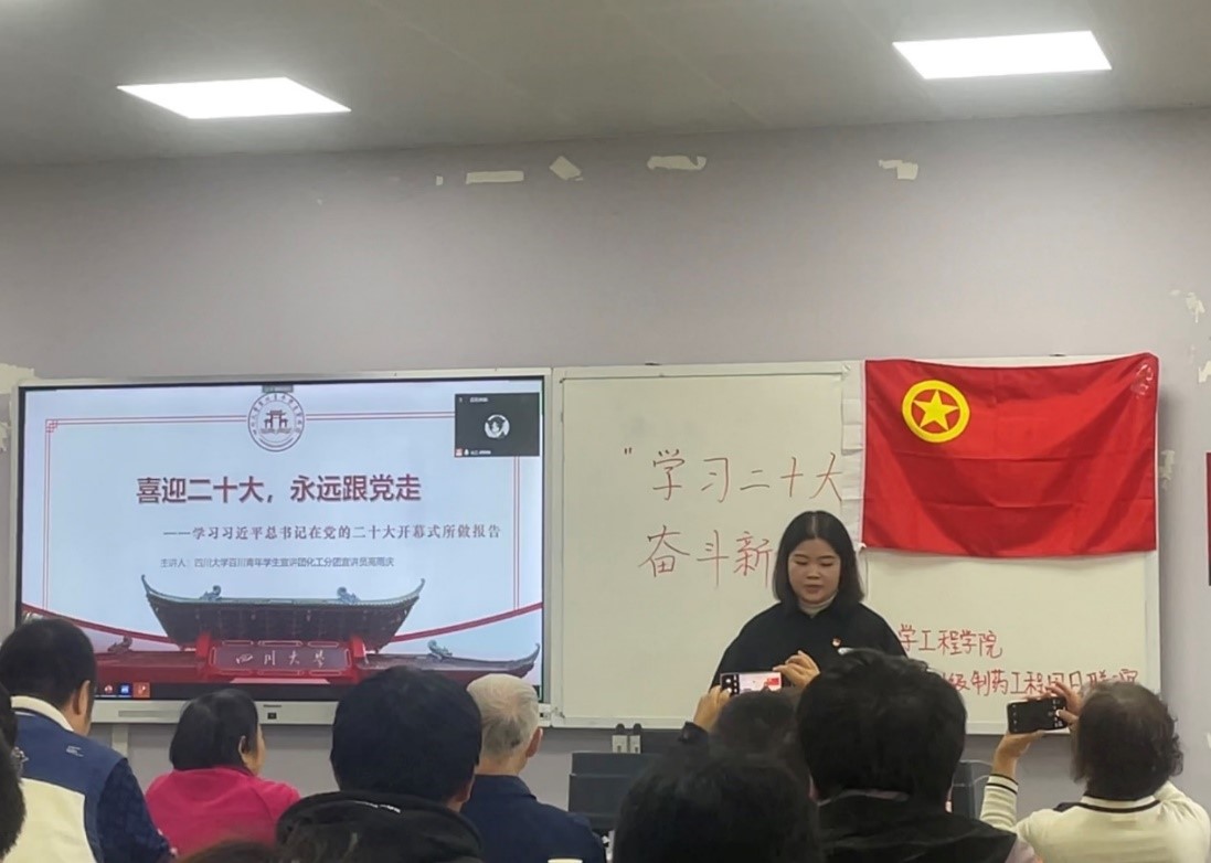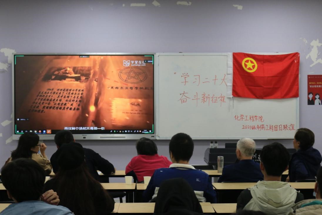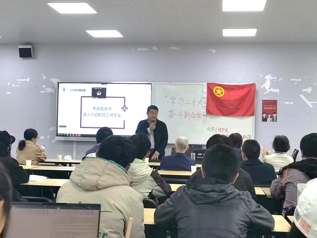 2021级制药工程专业全体同学在江安校区综合楼B座404开展了“学习二十大,奋斗新征程”主题团日活动。通过同学和老师梳理学习化工的意义与价值,把学习和实践结合起来,激发新时代化工人的建功立业的斗志,争做红色卓越化工新人;同时凝聚青年的力量,激发热情,通过老一辈化工人和优秀学长学姐分享二十大心得,引导青年深刻认识和理解二十大精神,充分运用自己的专业知识传递正能量,勇担使命,为社会主义事业建设贡献力量。出席本次活动的嘉宾有:楼凤