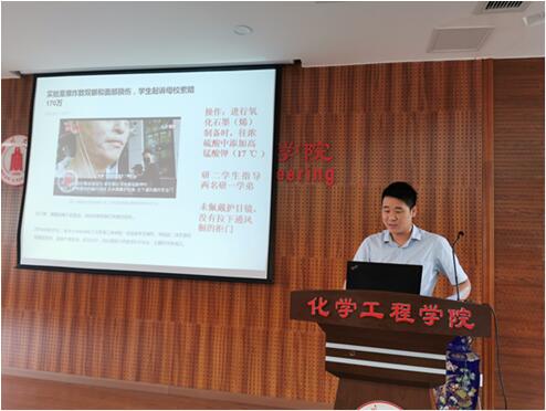 郭孝东副院长对近年来部分高校出现的实验室安全事故进行了详细介绍,对实验事故产生原因进行了分析。结合近年来楼凤