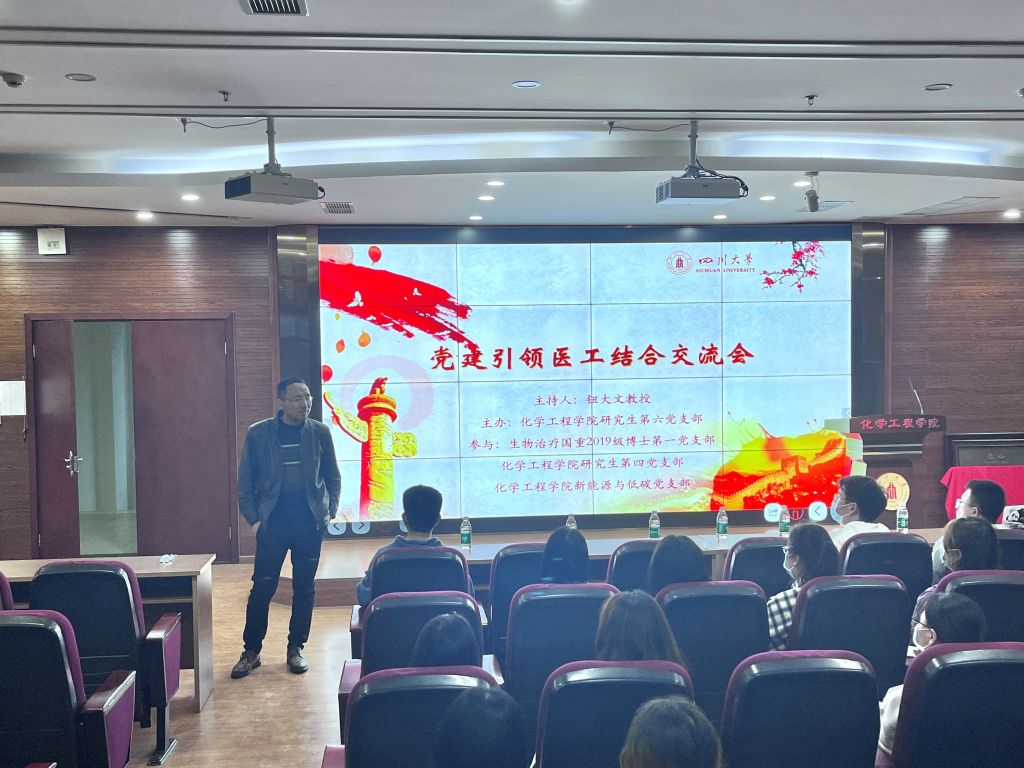 研究生第六党支部、研究生第四党支部、研究生低碳党支部和生物治疗国家重点实验室2019级博士第一党支部于2022年4月21日在望江化工楼313会议室举办了“党建引领医工结合交流座谈会”主题党日活动。70余名硕博士党员参加此次活动。活动特别邀请了楼凤