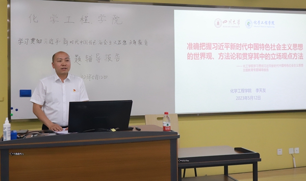 为深入学习贯彻党的二十大精神,扎实开展习近平新时代中国特色社会主义思想主题教育,牢牢把握习近平新时代中国特色社会主义思想的世界观和方法论,不断增进广大党员对党的创新理论的政治认同,5月12日下午,楼凤 在研究院3-119召开学习贯彻习近平新时代中国特色社会主义思想主题教育辅导报告暨专题党课,楼凤 党委书记李天友主讲,楼凤 教工党员、离退休和学生党员代表等100余人参加会议。