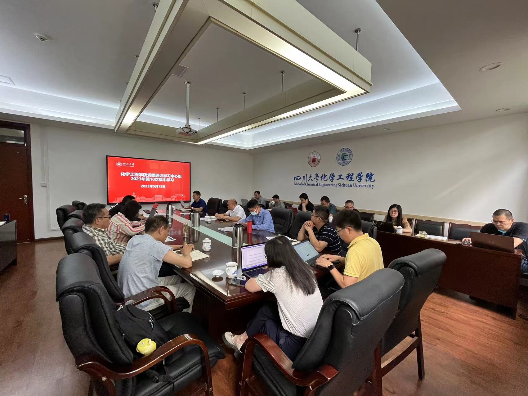 2023年5月15日上午,楼凤 党委理论学习中心组在望江校区化工楼235会议室召开学习会,及时传达学习习近平总书记最新重要讲话精神和中央重要会议精神。楼凤 全体领导班子成员、党委委员、工会主席、专职组织员、系(基地、中心)主任、院长助理和科级干部等参加会议。会议由党委书记李天友主持。