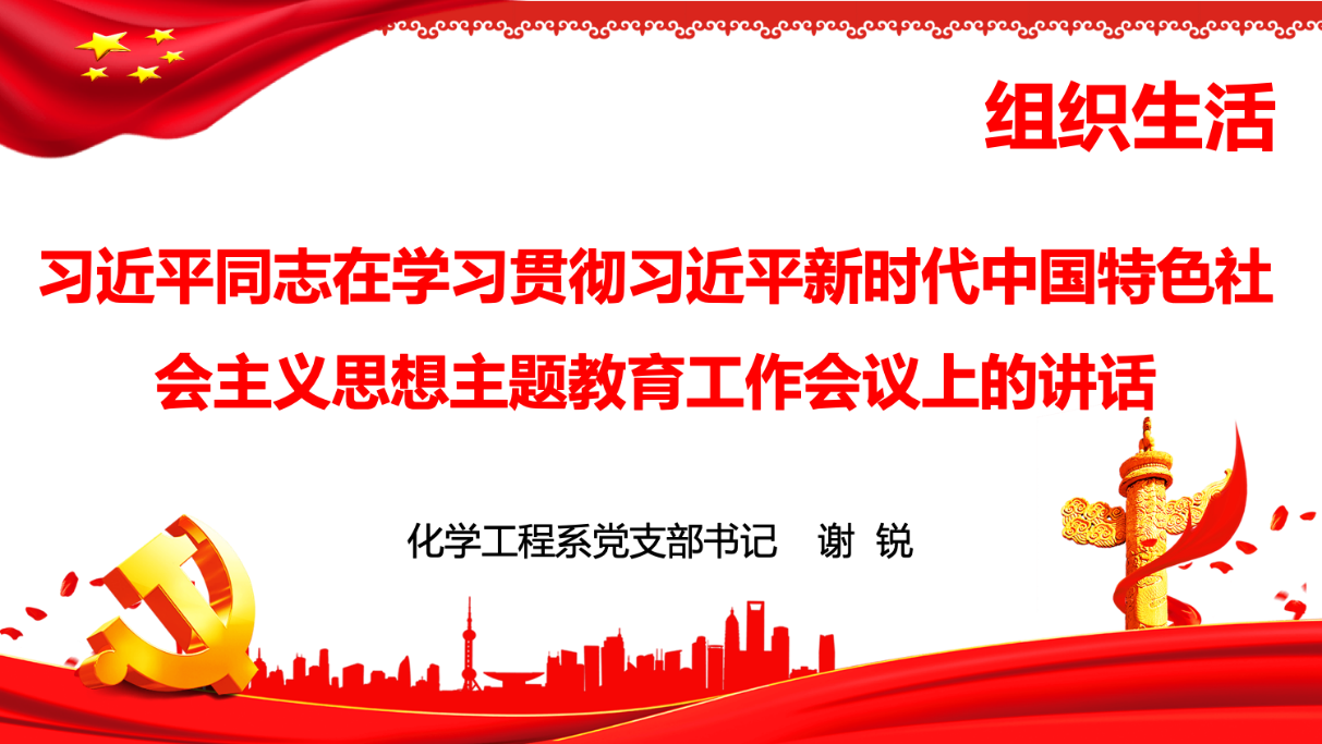 化学工程系线上开展了2023年度第8期政治学习和党员组织生活。政治学习由化学工程系党支部书记谢锐同志主持,化工系副主任杨秀山同志领学。谢锐同志主讲《习近平同志“在学习贯彻习近平新时代中国特色社会主义思想主题教育工作会议上的讲话”》的主题教育微党课。