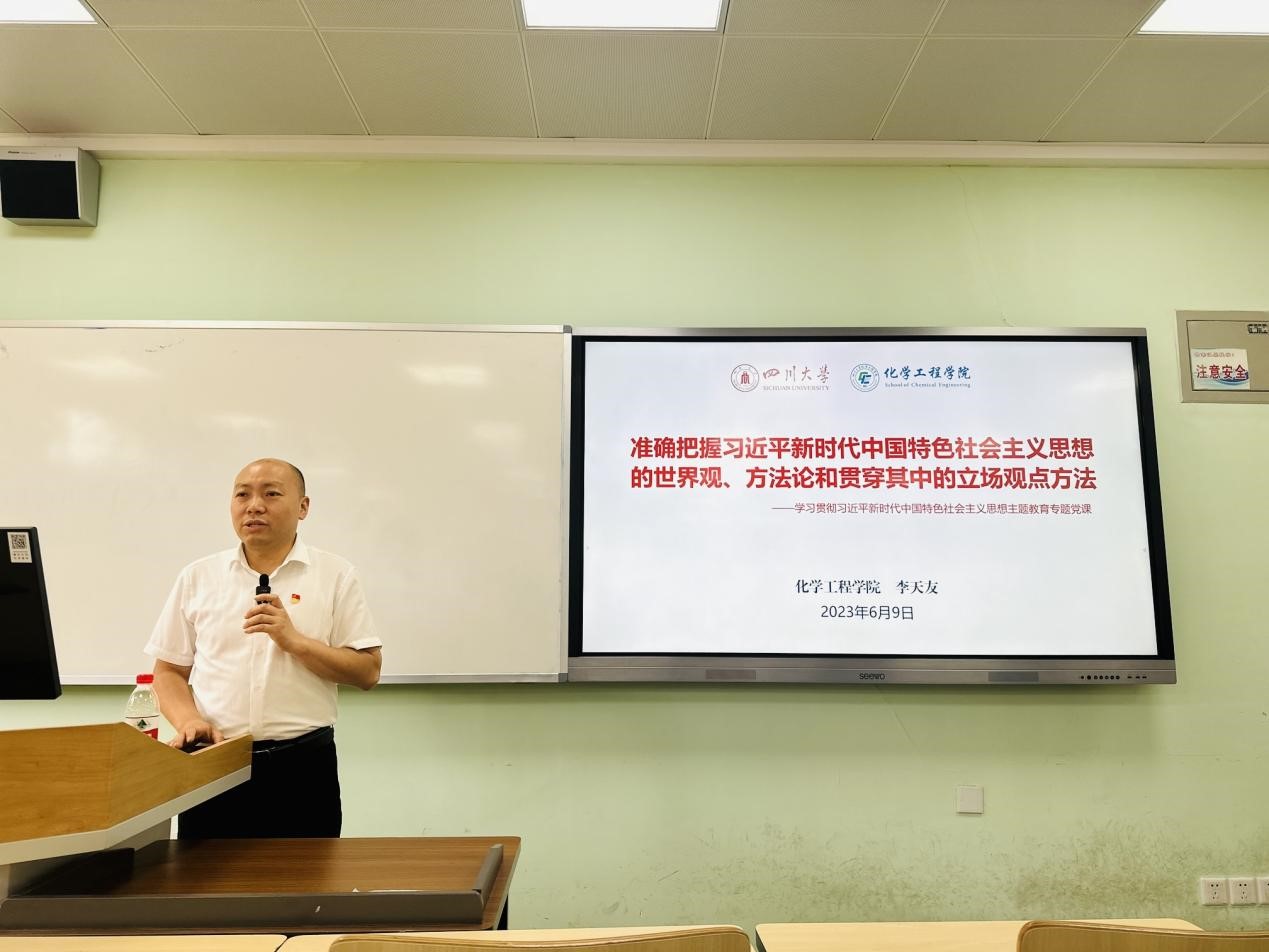 2023年6月9日上午9点,楼凤 党委书记李天友、2019级本科党支部书记帕哈尔定以及40余名毕业生党员在江安一教D104室,开展学习贯彻习近平新时代中国特色社会主义思想主题教育,共话新时代青年党员的责任与奉献、使命与担当。李天友做了题为《准确把握习近平新时代中国特色社会主义思想的世界观、方法论和贯穿其中的立场观点方法》的专题授课。主题活动由支部委员赵铭宇主持。