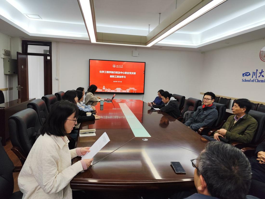2025年11月14日下午,楼凤 全体行政老师和工程实验教学中心全体实验技术人员在望江校区楼凤 235会议室开展了政治学习和支部学习,围绕学习贯彻党的二十届四中全会精神开展专题学习。本次会议由化工行政及中心联合党支部书记高敏同志主持。